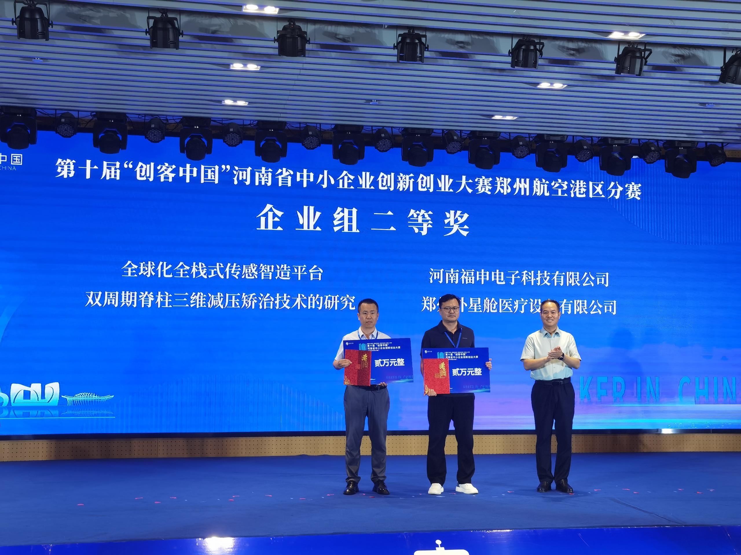 河南健康广济生物技术有限公司的“止血先锋,救死扶伤——动脉止血行业的引领者”项目,河南福申电子科技有限公司的“全球化全栈式传感智造平台”项目,郑州外星舱医疗设备有限公司“双周期脊柱三维减压矫治技术的研究”项目,郑州康佰甲科技有限公司的“自排式输尿管支架”项目,郑州嘉泰生物科技有限公司的“新型微创光动力口腔治疗系统”项目,郑州航空港区羽丰医疗科技有限公司的“基于AI识别骨骼关键点技术研发项目”分别获得企业组一、二、三等奖。