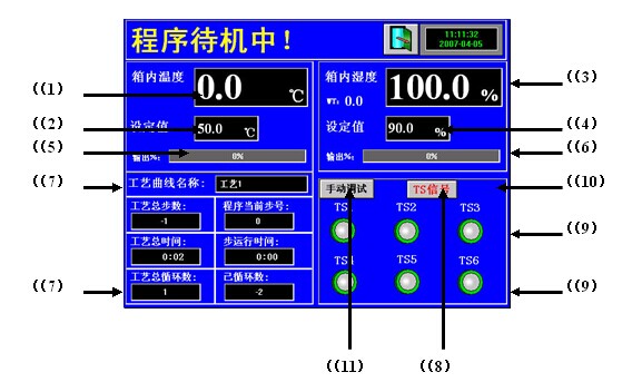 (13) 手动运行键———————按下此键运行系统,放开停止运行