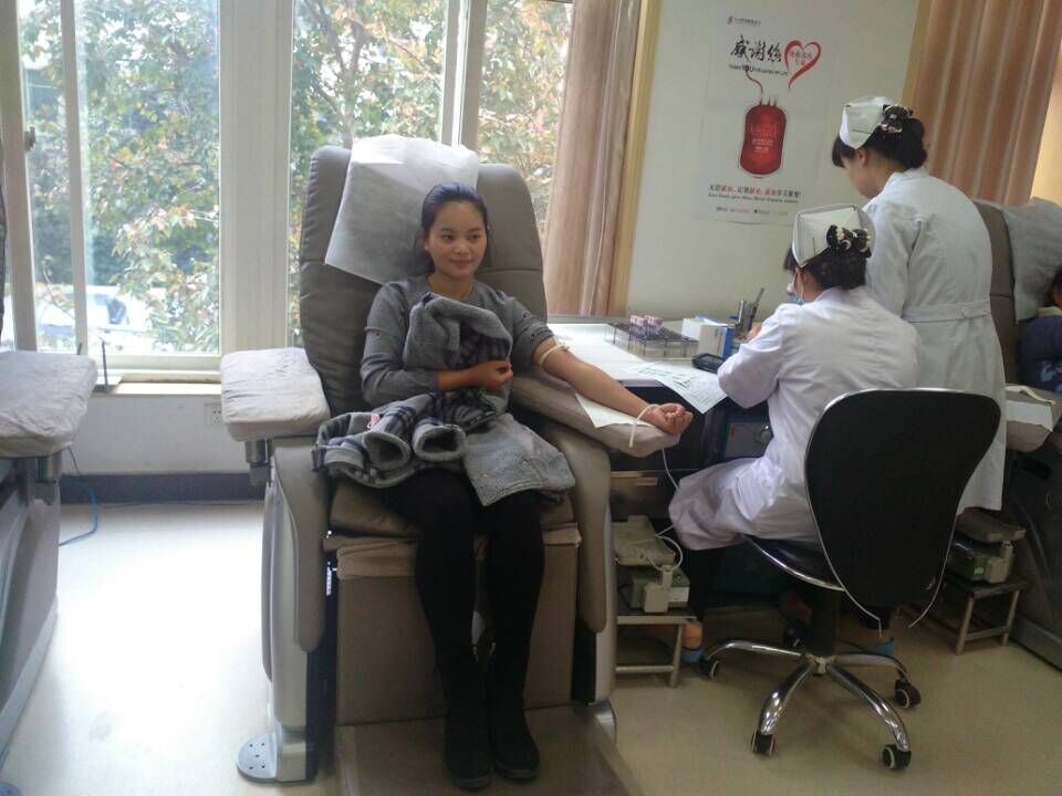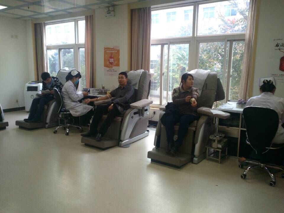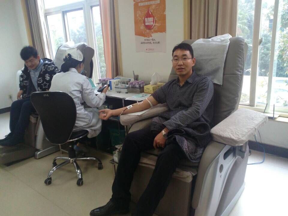 11月7日8点40,由飞龙医疗行政部组织献血人员从公司出发,乘坐公司安排车辆前往省血液中心,参加无偿献血活动。到达省血液中心时,血液中心工作人员已经到位,献血者自觉按照流程填写表格、排队检查身体,经过医务人员的常规检查化验后,进入采血屋。