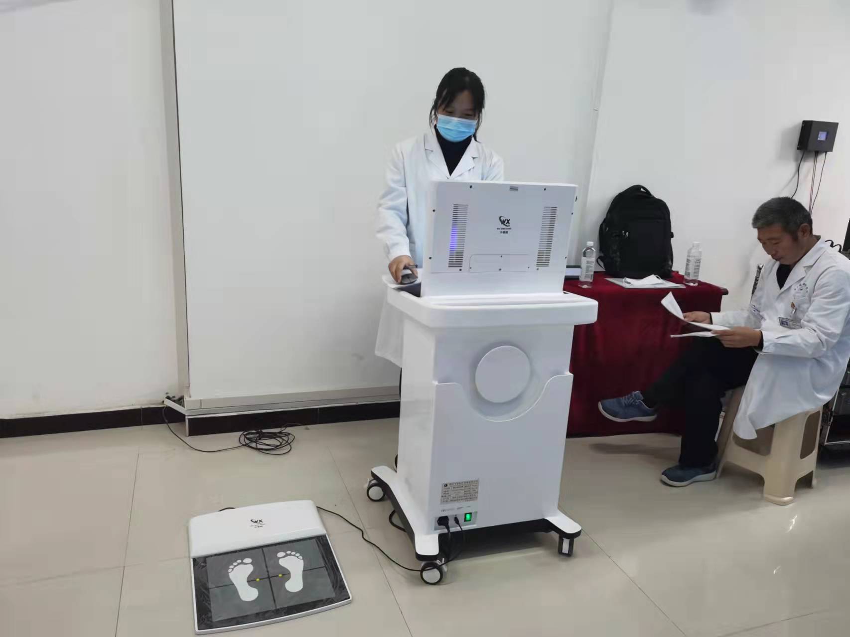 初步评估后用先进仪器对初筛疑似学生进行旋转角度和足底压力测量。