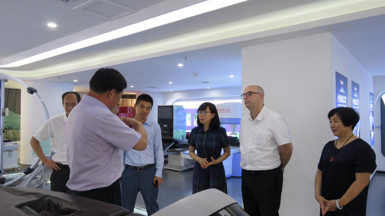 2019年8月8日,欧盟生命科技联盟MAGIA、清华大学互联网产业研究院、郑州飞龙医疗设备有限公司三方代表,就深化国际交流合作展开座谈,分享观点、凝聚共识、共同探讨健康产业发展。欧盟生命科技联盟中国联络代表Dennis Wilkens、清华大学互联网产业研究院郑州中心负责人张海升、郑州医疗器械行业协会会长牛留栓、协会秘书长侯利娜、郑州飞龙医疗设备有限公司董事长张新民出席本次座谈会。