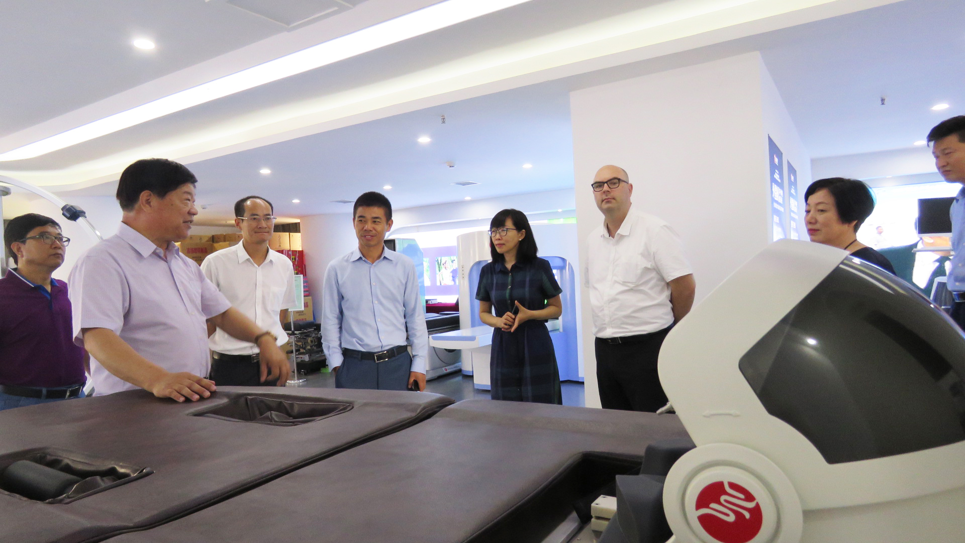 郑州飞龙医疗设备有限公司董事长张新民带领大家前往飞龙医疗产品展厅进行参观,他向来宾详细介绍了飞龙医疗的外星舱非手术脊柱减压系统、外星舱颈椎定位周期牵引系统等高端康复设备,以及自主研发生产的艰辛历程,促进了彼此的深入了解。